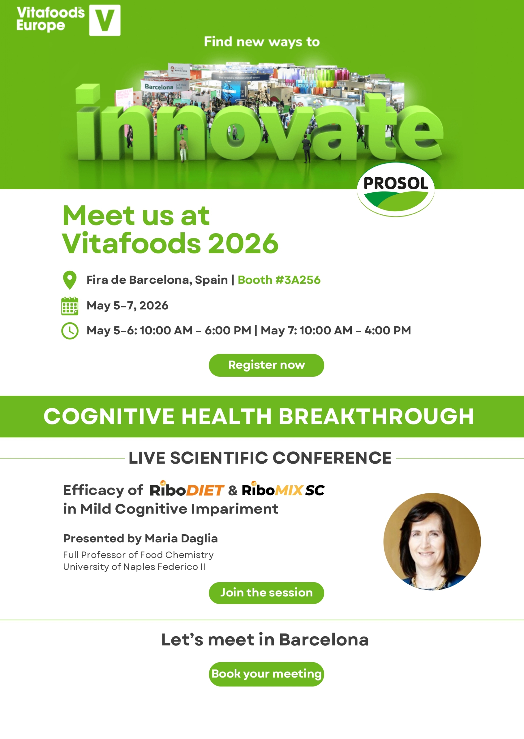 Prosol will present new clinical data on RiboDIET ® and RiboMIX SC for the support of cognitive function in individuals with Mild Cognitive Impairment (MCI)—an early stage of cognitive decline where daily activities remain largely unaffected.