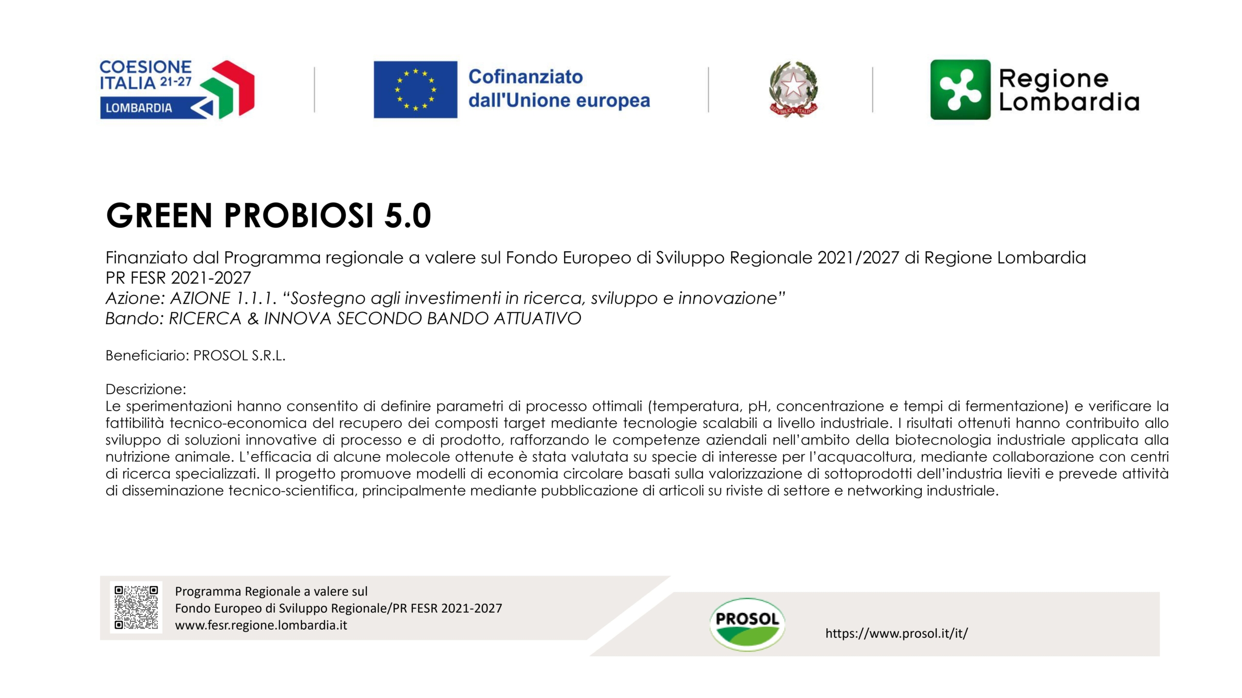 Con il progetto GREEN PROBIOSI 5.0, Prosol rafforza il proprio impegno nello sviluppo di soluzioni biotecnologiche sostenibili per la valorizzazione del lievito. Attraverso processi naturali e innovativi, i sottoprodotti del lievito vengono trasformati in ingredienti e biomolecole ad alto valore, contribuendo allo sviluppo di modelli produttivi basati sull’economia circolare.
